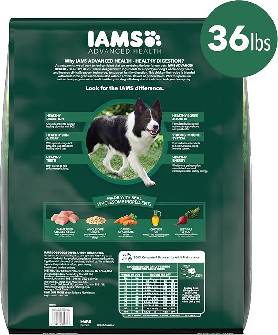 Amazon Com Iams Advanced Health Adult Healthy Digestion Dry Dog Food With Real Chicken 36 Lb Bag Pet Supplies